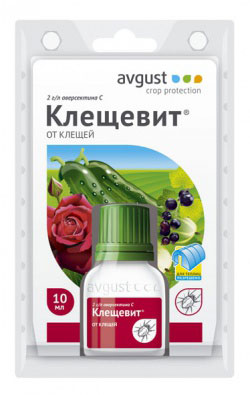 Клещевит – инсектицид контактно-кишечного действия биологического происхождения. Препарат применяют для борьбы против клещей на овощных, плодовых и цветочных культурах.