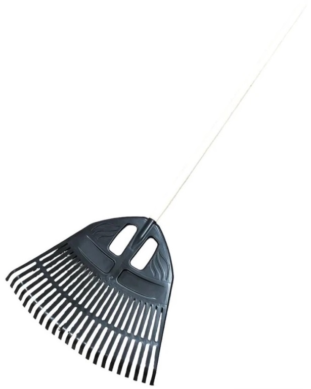 Пластмассовые веерные грабли, изготовленные из высококачественного первичного полипропилена, предназначены для уборки листьев, тонких веток, мусора с газона.