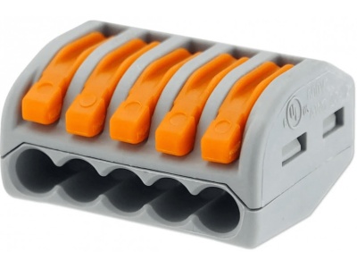 Соединительная клемма серии СК позволяет присоединять и разветвлять одножильные проводники сечением от 0,1 мм2 до 2,5 мм2 и многожильные проводники сечением от 0,1 мм2 до 4 мм2. Перед монтажом необходимо зачистить проводник от изоляции и зафиксировать в монтажном гнезде клеммы при помощи откидного рычажка.